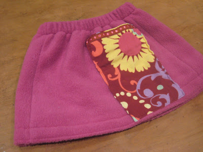 Before we went on our recent long weekend away I also made my skirt-mad little girl this skirt to go with tights, so she wouldn't feel left out. Just an elastic waist and a bit of the fantastic Amy Butler fabric as a decorative pocket. My model was a little reluctant to follow any photographic art direction from mamma, but you get the idea.